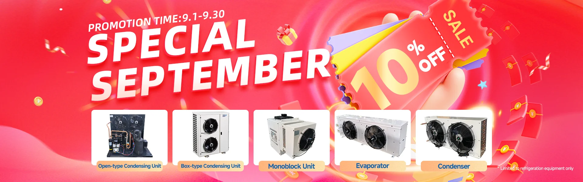ผลิตภัณฑ์หลัก:ชุดควบแน่น, คอนเดนเซอร์, พัดลมแกน, ห้องเย็น, เครื่องระเหย